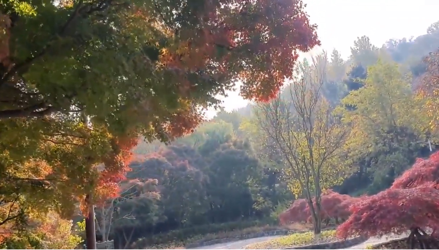 울긋불긋 단풍길 + 물안개 + 싱그러운 햇빛이 조화를 이루어