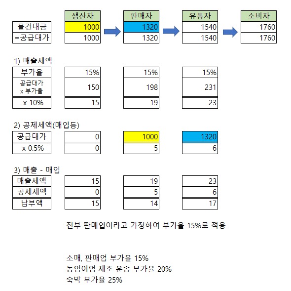 위 그림에서 부가세는 매출세액과 매입세액으로 계산했고,
