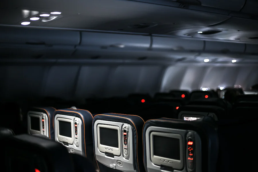 기내에서 작은 불빛은 가까운 경우 눈을 감아도 보입니다. 안대를 써서 시야를 어둡게 하는 것이 잠을 깨지 않는 방법입니다.