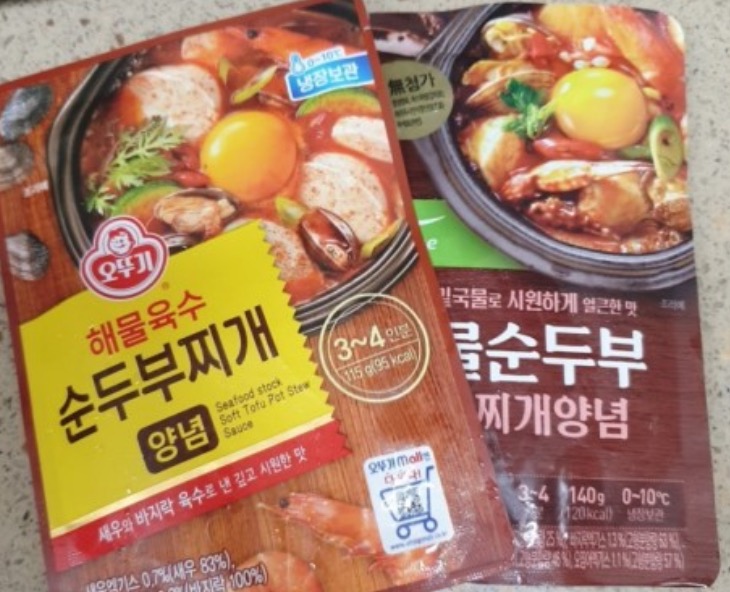 시판 순두부찌개 레토르트 소스만 파는거 사서 적힌용량의 물 붓고 순두부 넣으면 끝입니다.