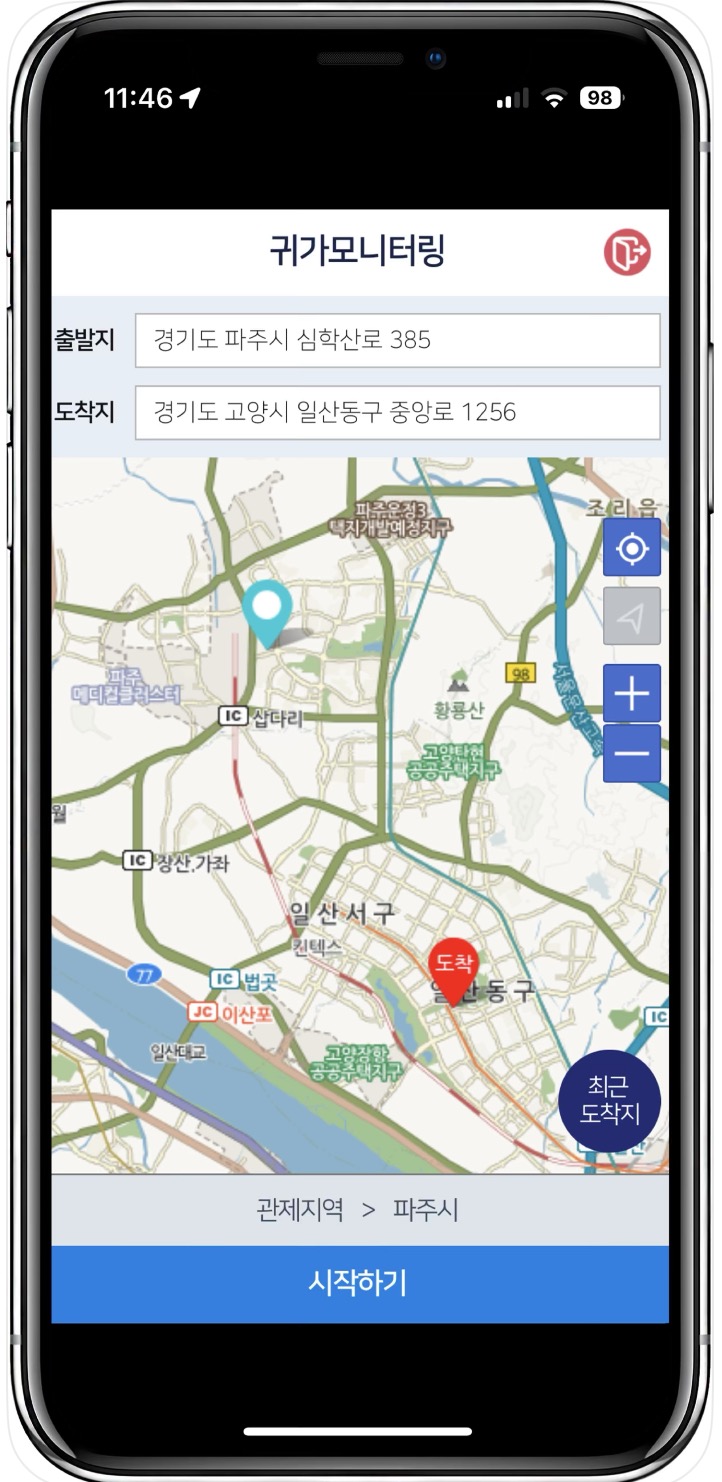 귀갓길의 지도를 볼 수 있고(실시간 위치)