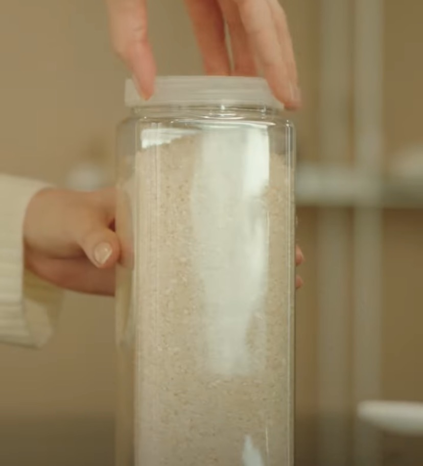 다이소나 백화점잡화점에서 곡식을 보관할 플라스틱을 구매한 다음에,