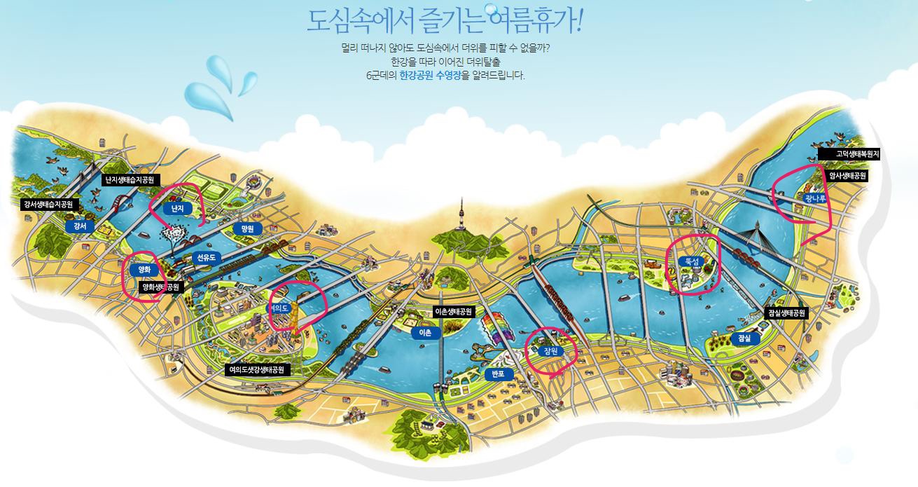 ※ 참고로 난지와 양화는 물놀이장밖에 없습니다.