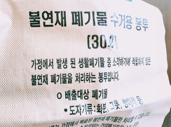 마대자루는 불에타지 않는 쓰레기, 불연성 물품을 버리는 도구 입니다.