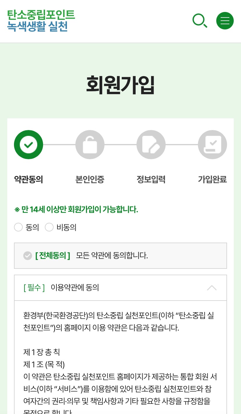 탄소중립실천포인트 홈페이지 가입방법
