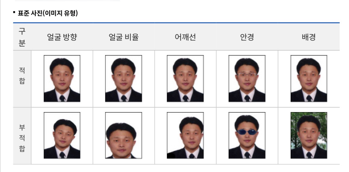 - 탈모사진등 불가 (모자 불가, 반창고 불가, 붕대 불가, 색안경 불가, 안경렌즈 조명반사 불가)