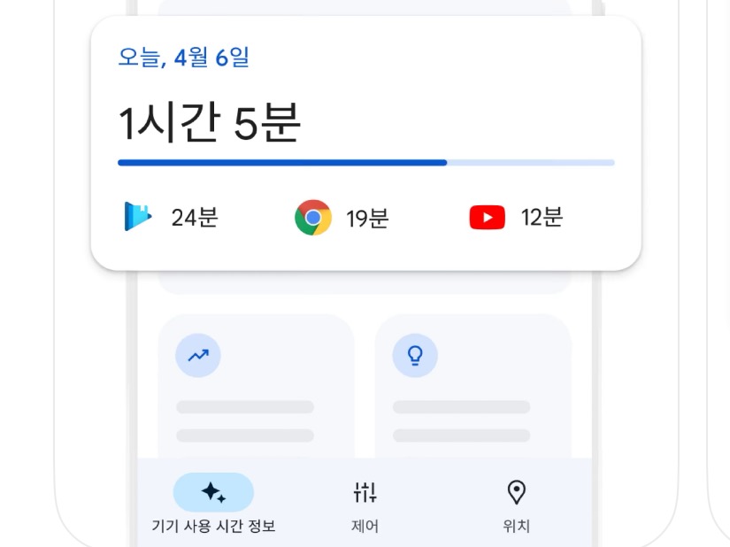 패밀리링크 앱에선 자녀의 스마트폰 앱 사용 시간을 관리할 수 있습니다.