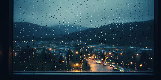 태풍은 강한 바람으로 창문에 지속적으로 충격을 줍니다.