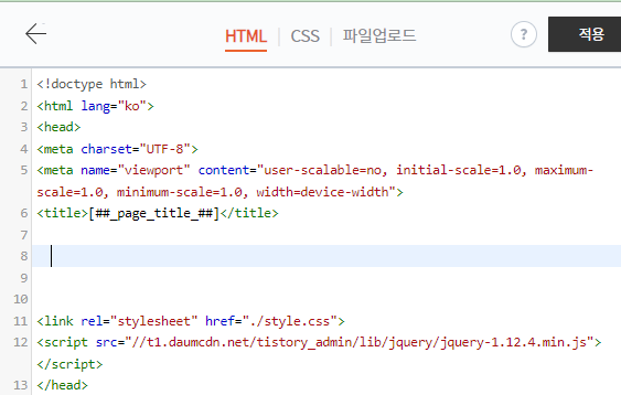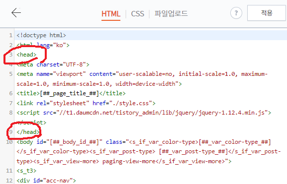 헤드는 블로그의 머리. 즉 기본 세팅이라는 의미입니다.