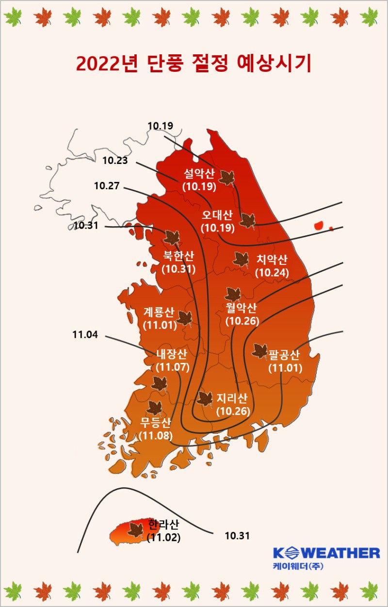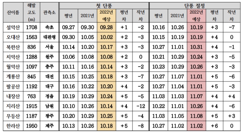 22년 첫단풍과 단풍 절정을 확인 할 수 있습니다.