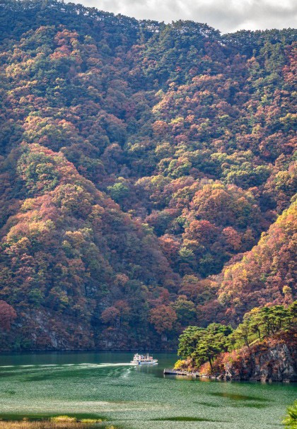 여느 해외여행지의 페리관광 보다 훌륭한 우리나라의 괴산호 단풍구경.